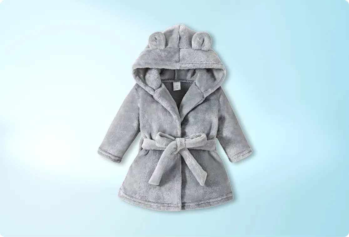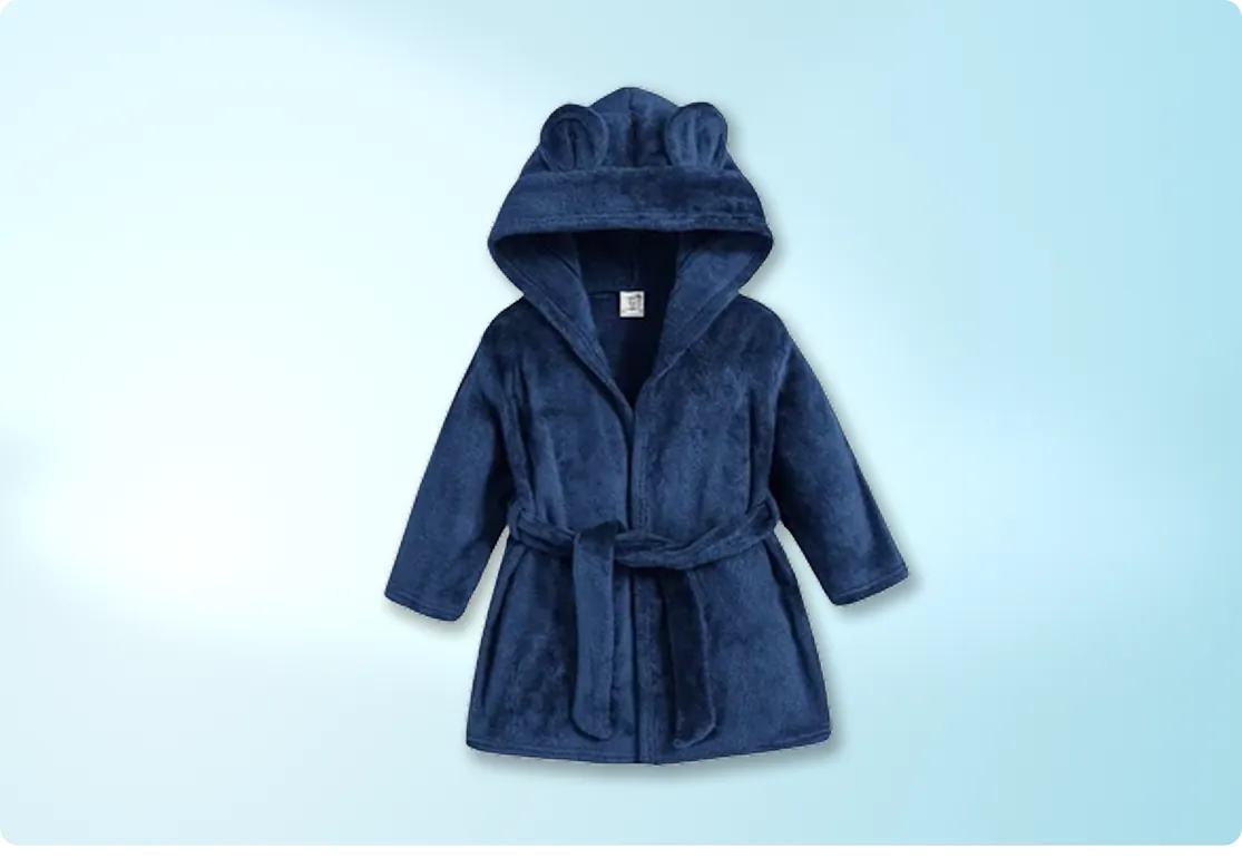Um roupão que vira ritual: depois do banho, antes do sono, no abraço de quem cuida.
